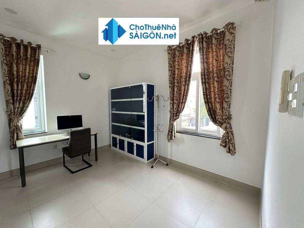- Đầy đủ nội thất: máy lạnh, rèm, bếp, nhà vệ sinh, sofa, bàn ăn, bàn làm việc, tủ hồ sơ